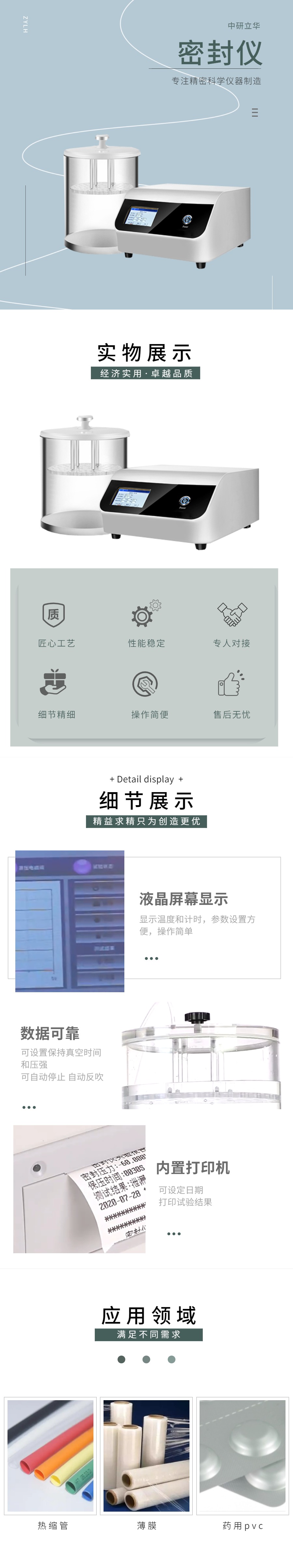 用途:用來檢測塑料包裝袋、包裝容器的密封狀況,應用于包裝、食品、藥品、日化等行業。可以有效地比較和評價包裝件的密封工藝及密封性能,亦可進行經跌落、耐壓試驗后的試件之密封性能測試