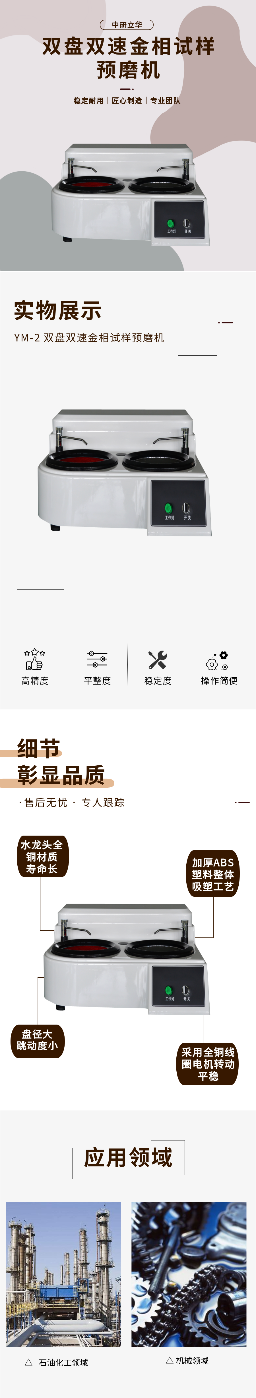 用途:該機是一種濕式磨光機,利用不同粒度的金相砂紙,對各種金屬及合金的試樣進行磨光。采用此機,以機械磨光代替手工操作提高制備試樣的效率。
