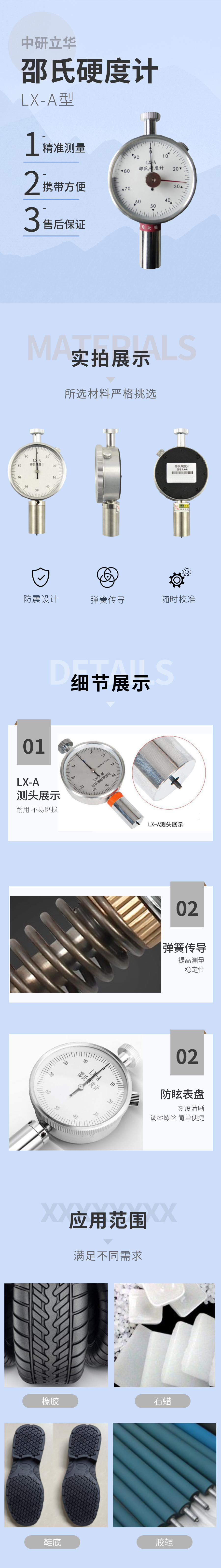 用途:LX-A為邵氏A型橡膠硬度計。主要用于測量軟質(zhì)材料。如天然橡膠、合成橡膠(如密封件、輪胎、膠輥、電線電纜、護套等),軟塑料(醫(yī)療器具等),人造皮革以及其它相關(guān)化工制品的硬度測量。